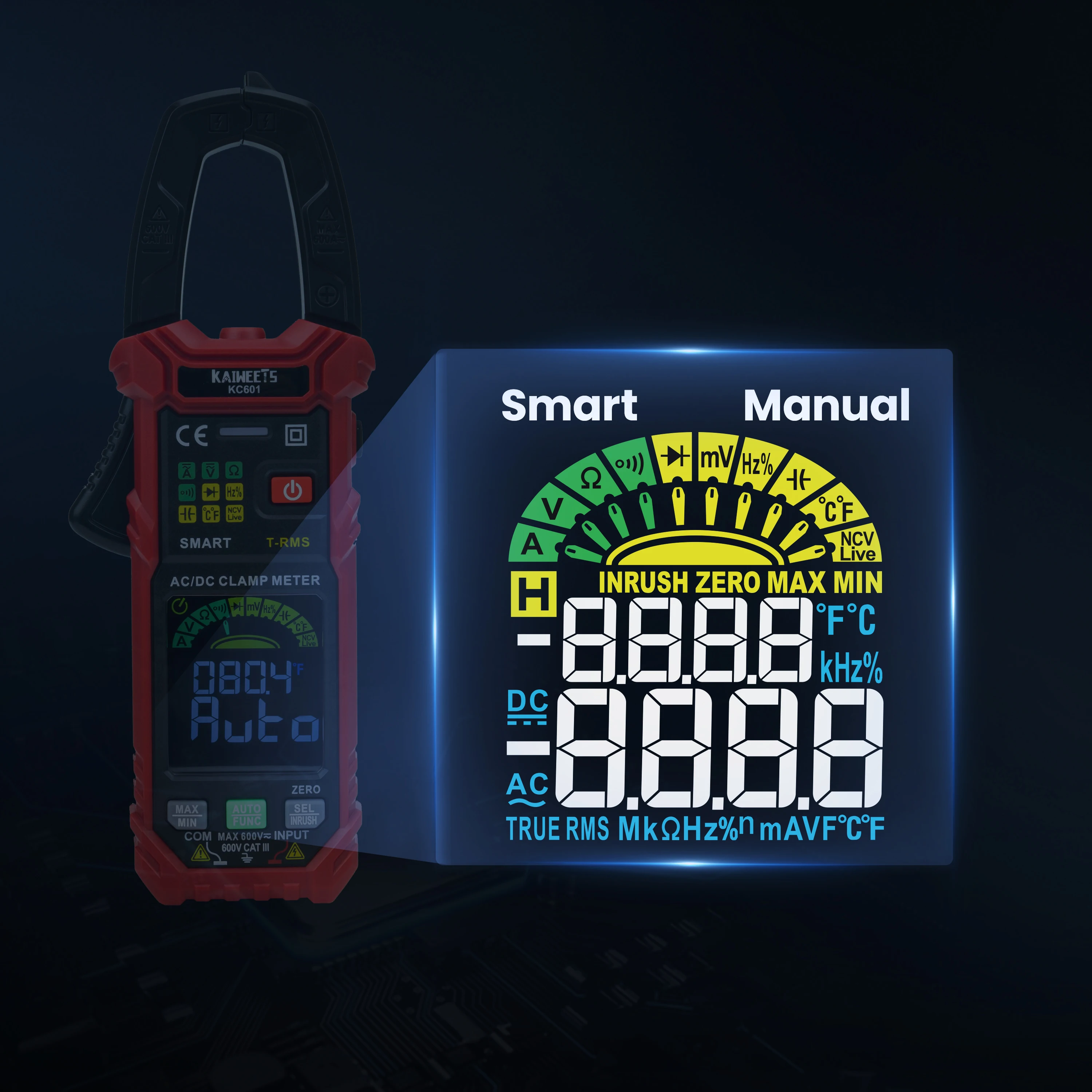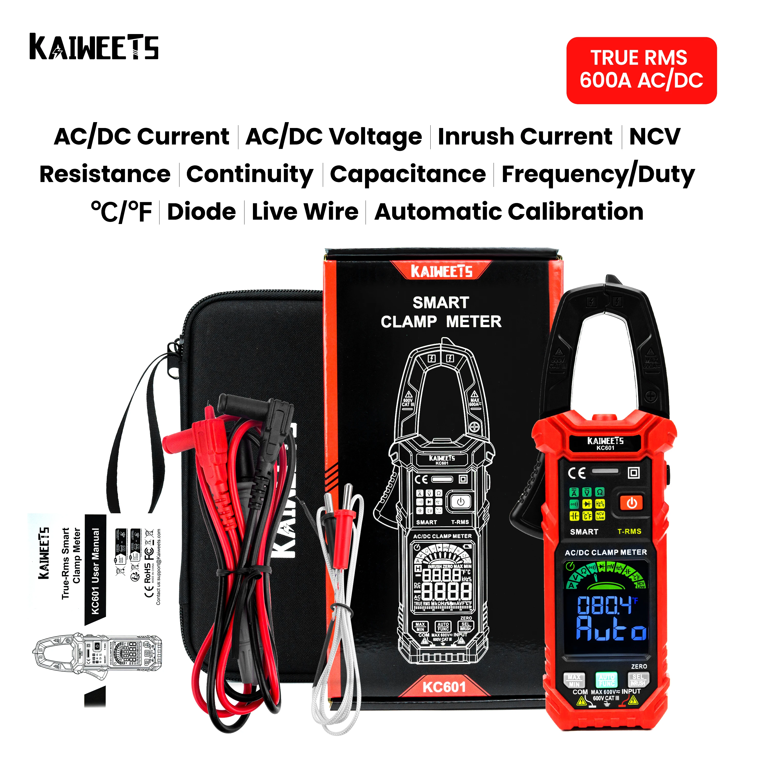 HVpSviIfZHere you can buy KAIWEETS Digital Clamp Meter True-RMS Auto Range DC AC Voltage Inrush Current Car Repair Current Volt Temp Capacitor NCV Tester with free delivery to your post office.