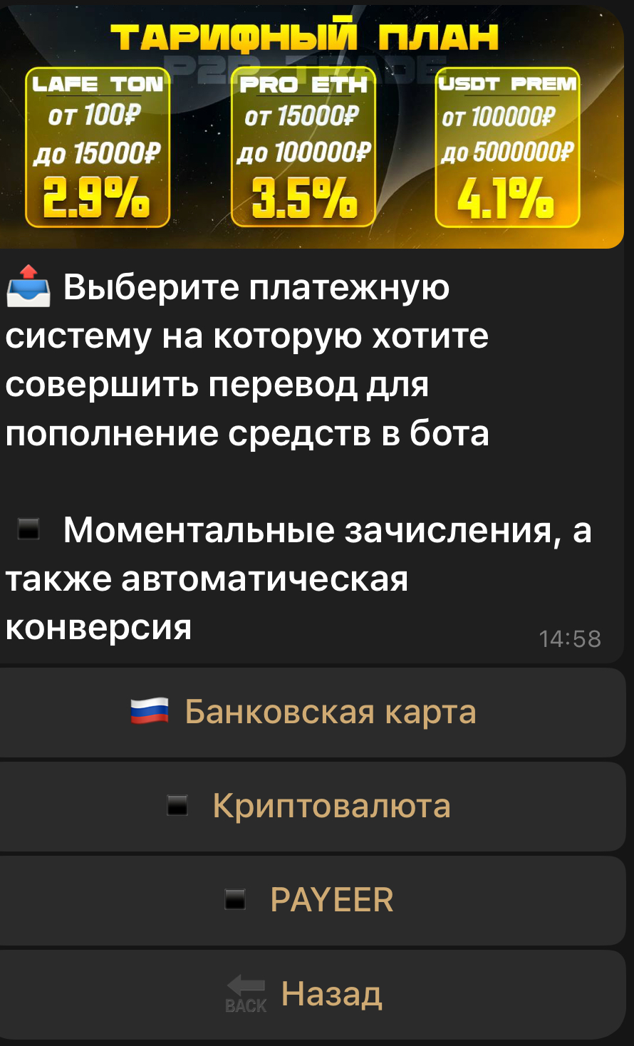 Действуйте строго по инструкции, осуществляйте пополнение денежных средств по реквизитам, которые вы получили в нашем Telegram приложении