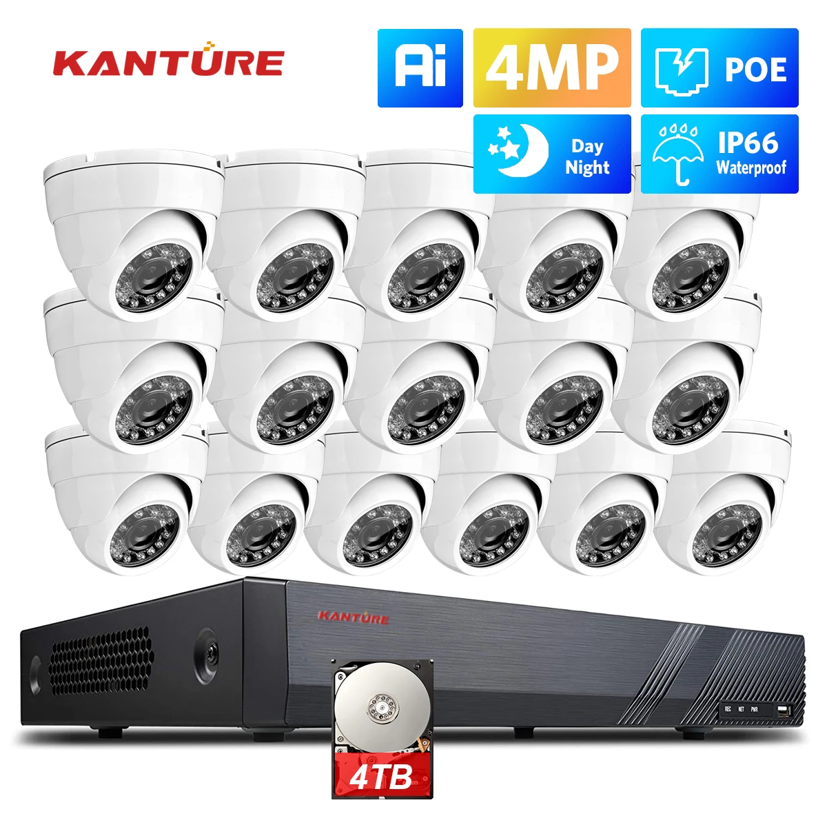JHLJDaYBHere you can buy KANTURE 16CH 2K 4MP Security POE IP Camera System Indoor Outdoor AI Human Detection Waterproof Video Surveillance Camera Kit 4TB with free delivery to your post office.