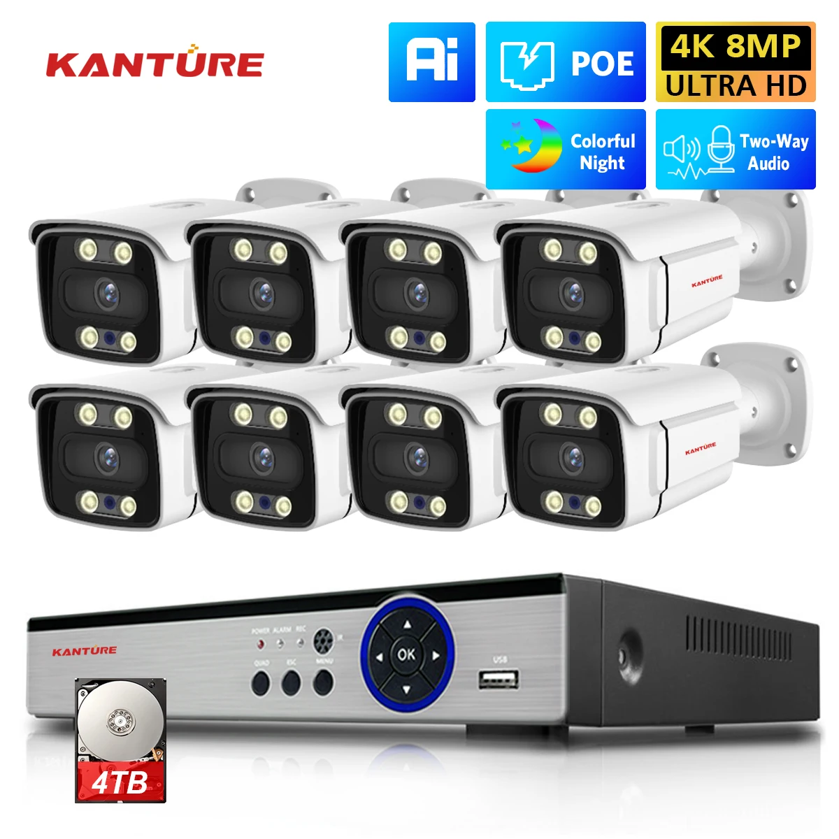 XpFDDvfcHere you can buy KANTURE 8CH 4K CCTV POE NVR 8MP Ai Human Detect Two Way Audio Color Night Security Camera System Outdoor Video Surveillance Kit with free delivery to your post office.
