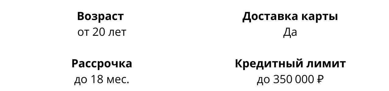 Кредитный лимит до 350 000 ₽;