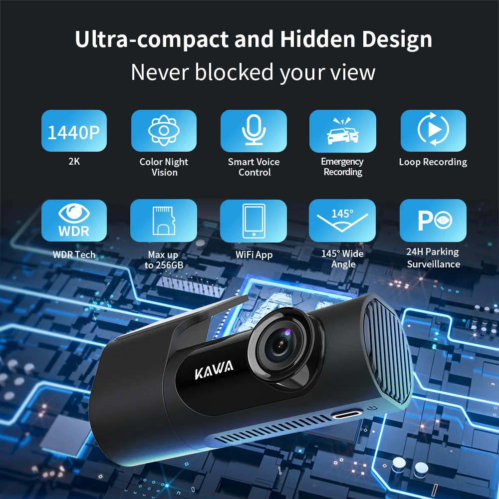 "KAWA Dash Cam For Cars D6 1440P Camera DVR In The Car Video Recorder Voice Control 24H Parking WiFi APP Monitor WDR 360 Rotation" * Buy Now With Free Shipping Just For $41
