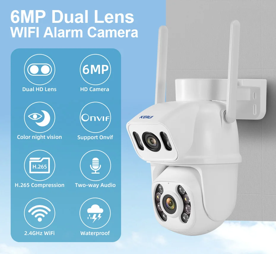 AKAwIJYGiHere you can buy KERUI 6MP Camera Security Protection Dual Lens WIFI Survalance Camera Smart Home Human Shape Tracking Waterproof CCTV iCSee H265 with free delivery to your post office.
