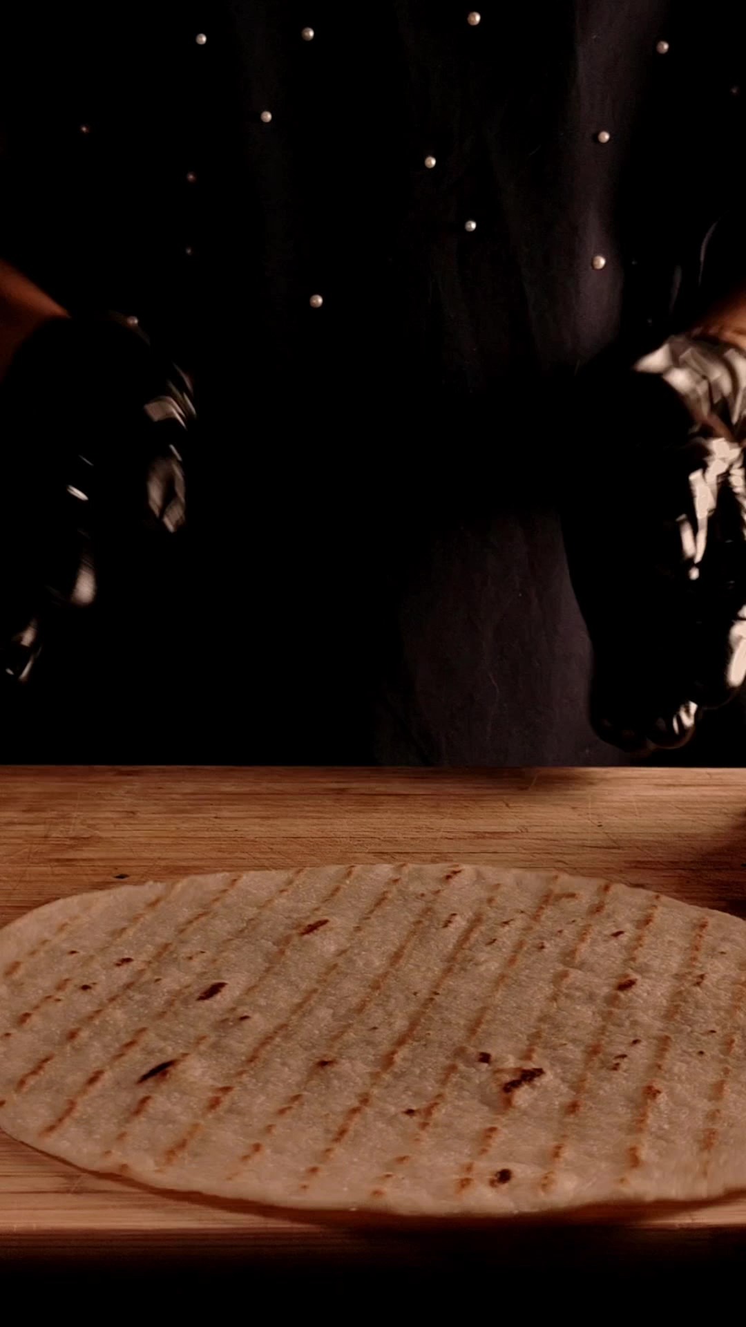- Разделить тесто на равные части, раскатать тортильи между двумя листами пергамента/ целлофана (удобнее).
