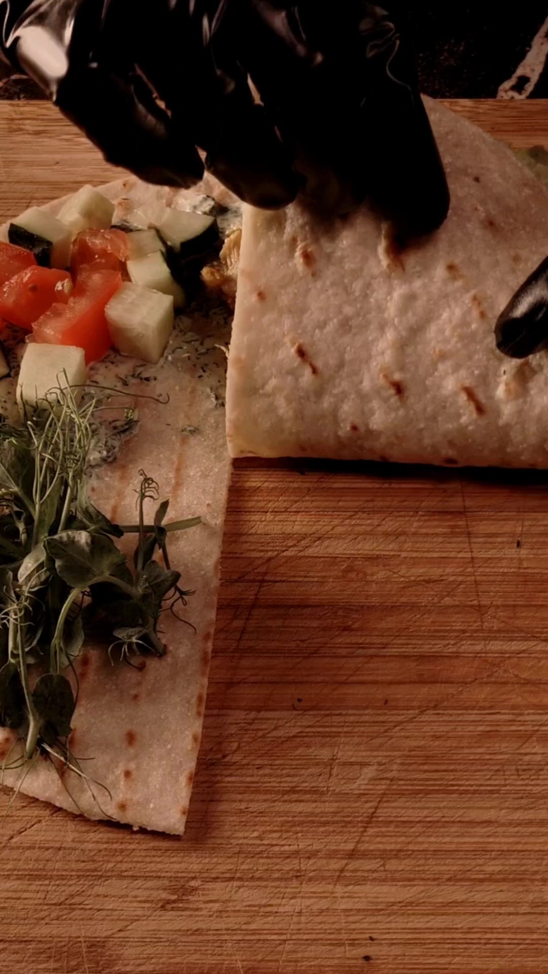 - Тортилью наполовину надрезать с одной стороны, как на фото.