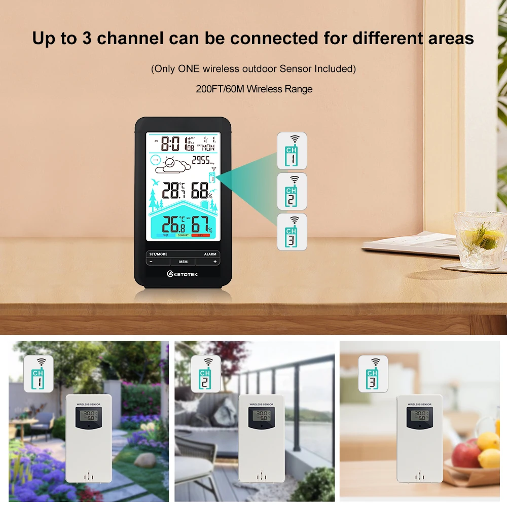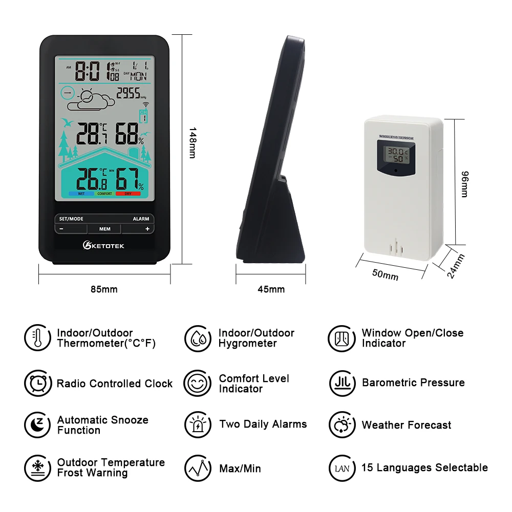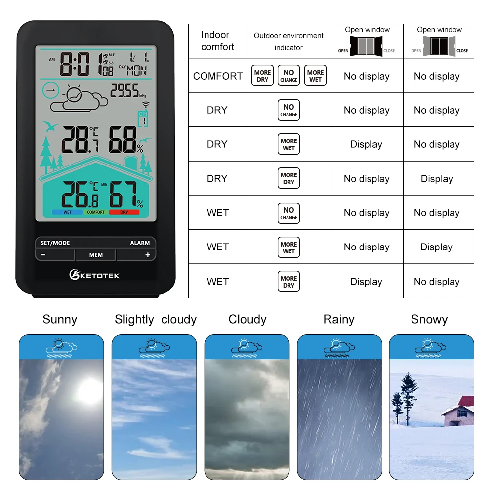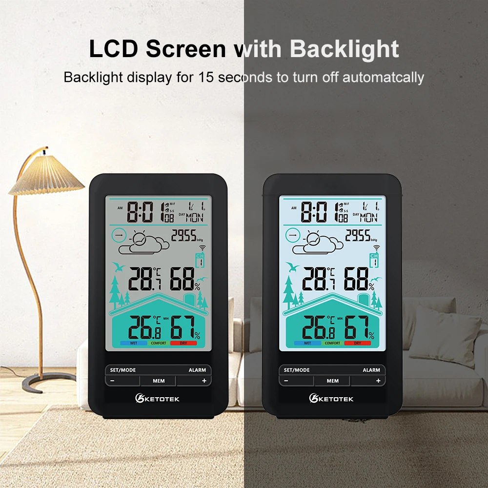 KETOTEK Thermometer Hygrometer Digital Meter Wireless Electronic Alarm Clock Wall Table Barometer forecast Weather station Tools - Купить с бесплатной доставкой