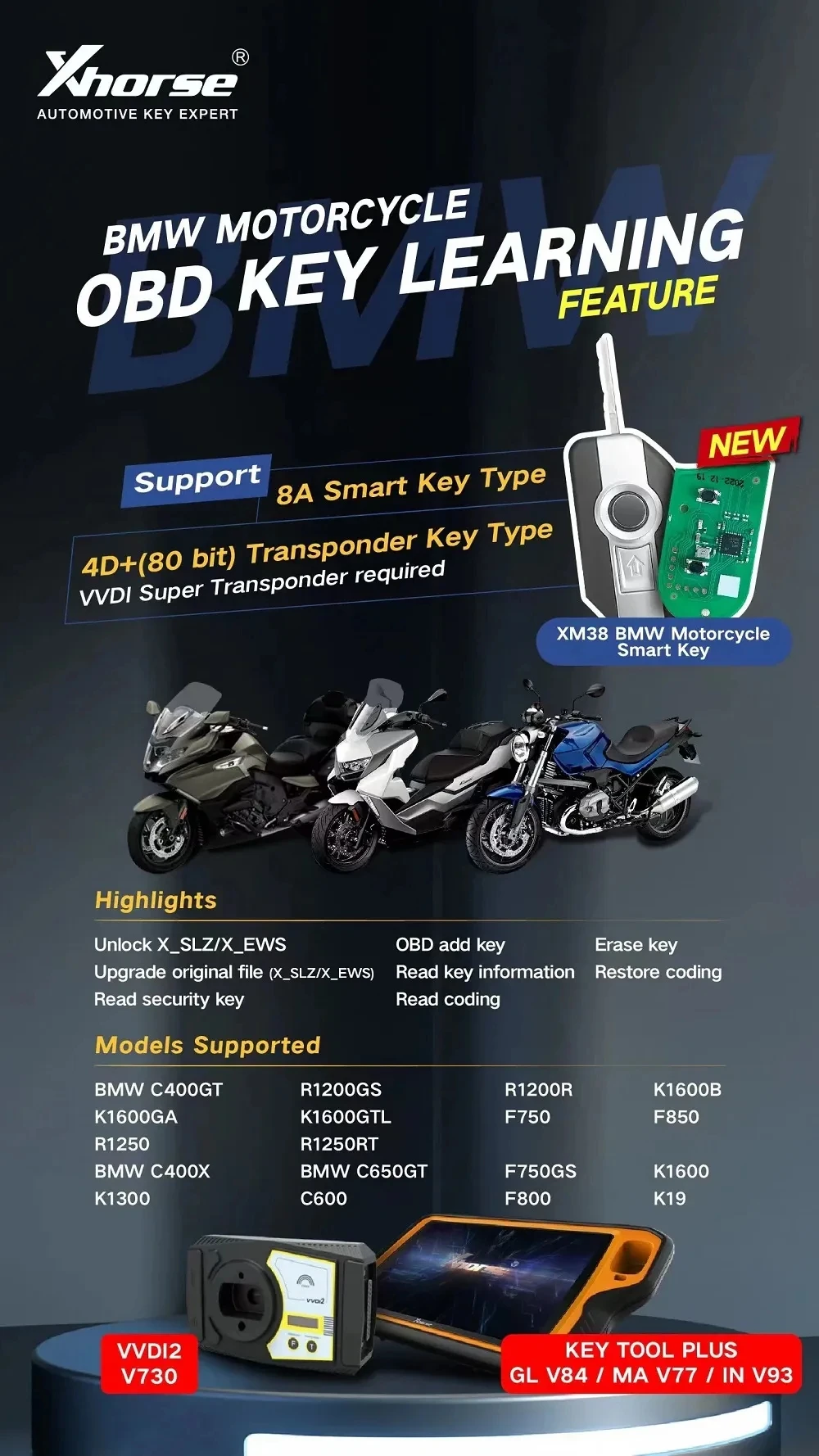 VtysDcagHere you can buy KEYECU Xhorse XM38 VVDI Smart Key XSBMM0GL For BMW Motorcycle Support 8A Smart Remote Key Type 4D 80 Bit Key Type with free delivery to your post office.