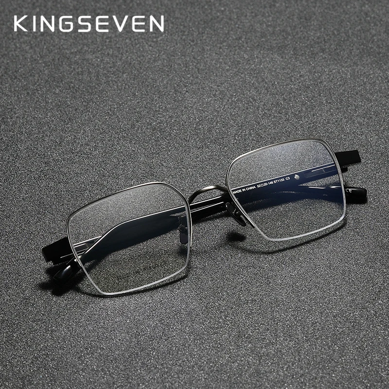 "KINGSEVEN Pure Titanium+Acetate Optical Glasses Half Frame Men 2020 Square Myopia Prescription Eyeglasses Male Metal Eyewear" * Buy Now Just For 21$