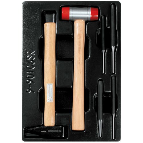 KING TONY marka set, bir vurmalı çalgı içerir ve enstrümana uygun çalışmalar yapmak üzere tasarlanmıştır.Amaç: Set, metalin soğuk işlenmesine yönelik 6 parça içerir (pimler ve kamalı pimler). Uygulama kapsamı: Servis istasyonları (SRT), araba servisleri, oto tamir atölyeleri Özellikler: • Alet sertleştirilmiş krom-vanadyum alaşımından yapılmıştır. . Isıl işlem görmüş darbeli çalışma yüzeyleri talaşlara ve sıkışmalara karşı koruma sağlar; • Alet, alet kutuları için özel olarak yapılmış bir PVC kızağa yerleştirilmiştir. Teknik özellikler: Kızağın boyutları, mm 375 x 265 Ağırlık, kg 2,05 Ekipman: • KING TONY zımba ( seri 761) - boyut Ø 5 x 150 mm - 1 adet; • KING TONY drifter (seri 764) - boyutlar Ø 4 x 50, Ø 5 x 55, Ø 6 x 55 mm - 3 adet; • KING TONY çekici (ürn. 7822-30) - 1 adet ;• Tokmak Ø 35 mm, 305 g, KING TONY, poliüretan yedek uçlar (ürn. 7842-35) - 1 adet. Beşiğin boyutları, mm 375 x 265 Ağırlık, kg 2,05