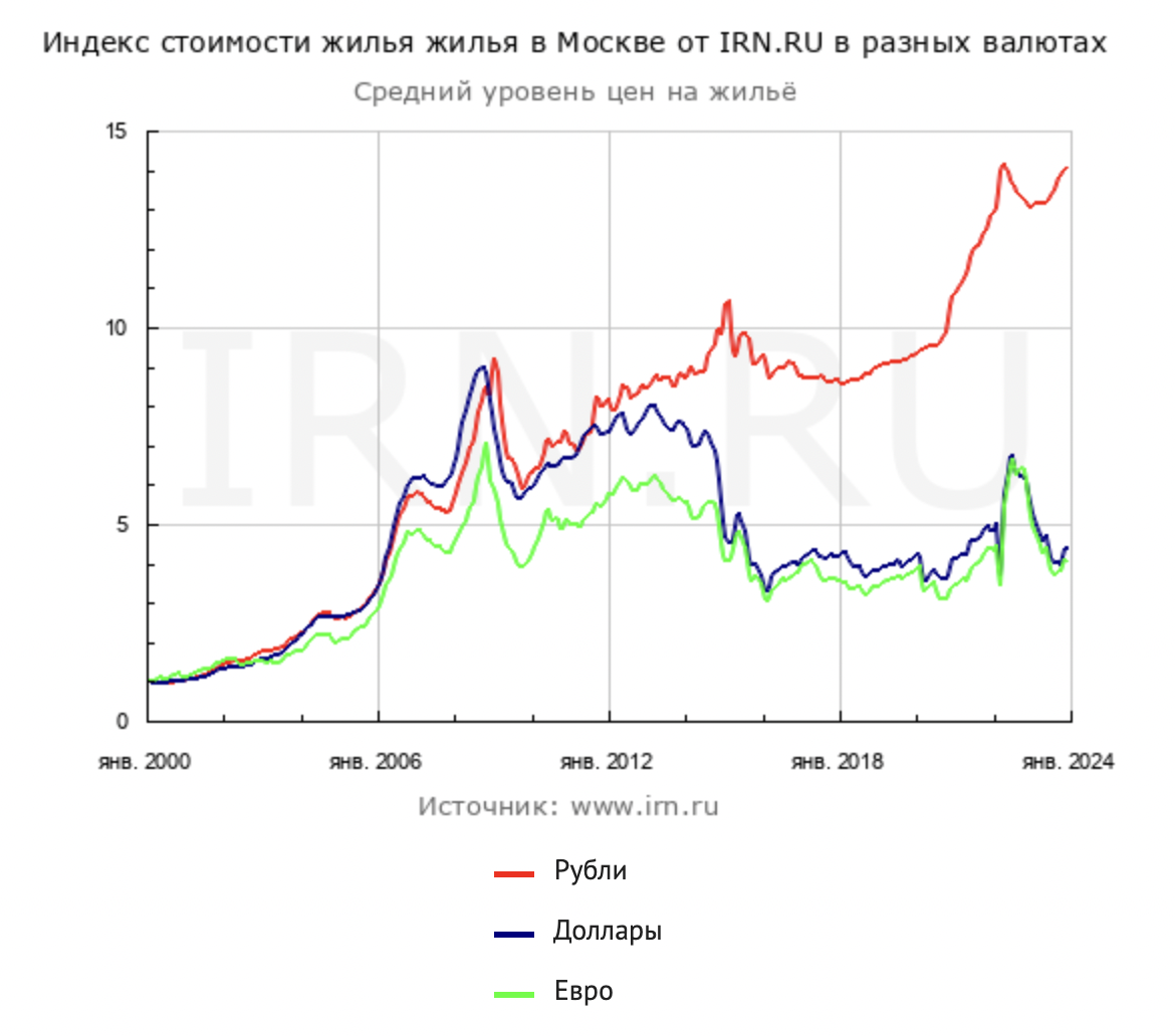 И если бы я в 2016 году купил квартиру, то в долларах она сейчас стоит ровно столько же. То есть за 8 лет я ничего как инвестор не заработал.