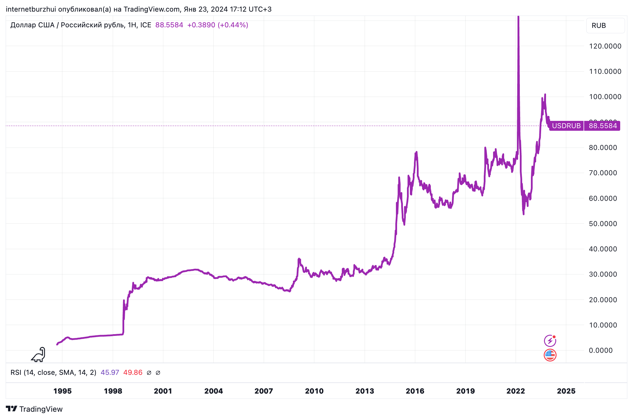 Смотрим на график и видим 2-х кратный рост в $ за 25 лет.