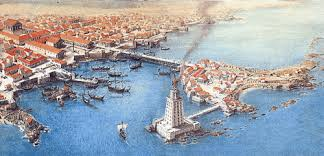 Когда они стали приближаться к городскому порту, юношу охватил трепет при виде огромного Фаросского маяка, расположенного на острове, который Александр [Македонский] соединил при помощи мола с материком, создав тем самым две величественные гавани и превратив Александрию в перекрёсток морских торговых путей Африки, Азии и Европы. Этот огромный маяк являлся одним из 7 чудес света и стал прообразом всех последующих маяков. 130:3.2