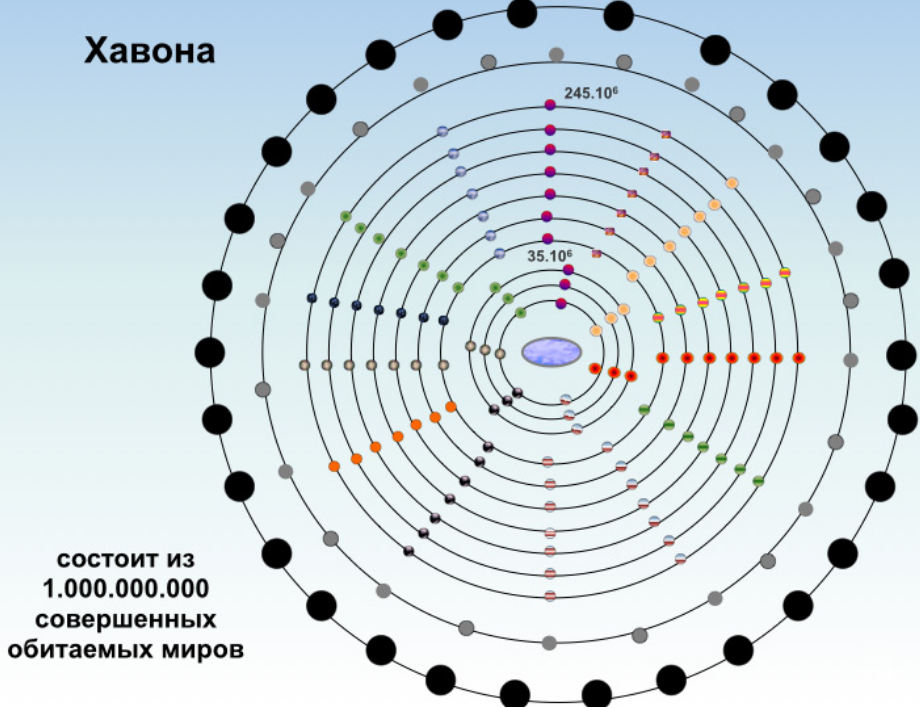 Главы по теме: центральная божественная вселенная • система Рай-Хавона • строение Хавоны • миры Хавоны • создания центральной вселенной • жизнь в Хавоне • назначение центральной вселенной.