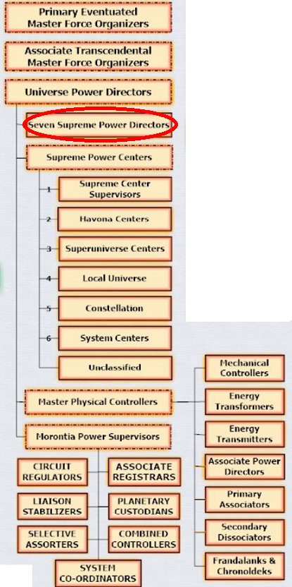 [1. Верховные Управляющие Центрами. 2. Хавонские Центры. 3. Центры сверхвселенных. 4. Центры локальных вселенных. 5. Центры созвездий. 6. Центры систем. 7. Неклассифицированные Центры.]
