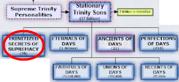 Райская классификация живых существ ►I. СУЩЕСТВА ТРИЕДИНОГО (от Троицы) ПРОИСХОЖДЕНИЯ ►►Б. Неизменные Сыны Троицы (30:1.7) ►►►1. Тринитизованные Тайны Верховности [правители Райских миров Отца]