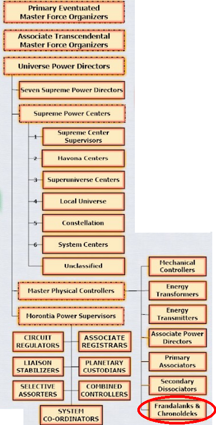 Четыре оставшиеся группы Главных Физических Регуляторов вряд ли являются личностями в каком-либо из приемлемых значений этого слова. Реакции этих передатчиков, объединителей, разъединителей и франдаланков полностью автоматичны; тем не менее, они разумны в любом смысле слова. Мы [излагает Всеобщий Цензор] очень мало знаем об этих замечательных сущностях, поскольку мы не способны общаться с ними. По-видимому, они понимают языки миров, но не могут общаться с нами. Как представляется, они способны получать наши послания, однако лишены какой-либо возможности отвечать на них. 29:4.26