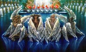 [Книга «Зоар» называет эти 4 образа над «таинственной колесницей» (др.-евр. «меркаба») — 4-мя архетипами, формирующими черты лица каждого человека. (Википедия)]