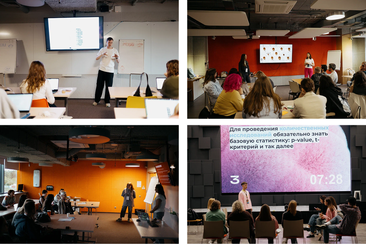 Обычно после докладов на конференции приступали к групповой работе, но из обратной связи мы знали о недостатках формата. В этом году решили поэкспериментировать и вместо групповой работы предложили каждому участнику посетить 1-2 мастер-класса на выбор. Записи мастер-классов не делали.