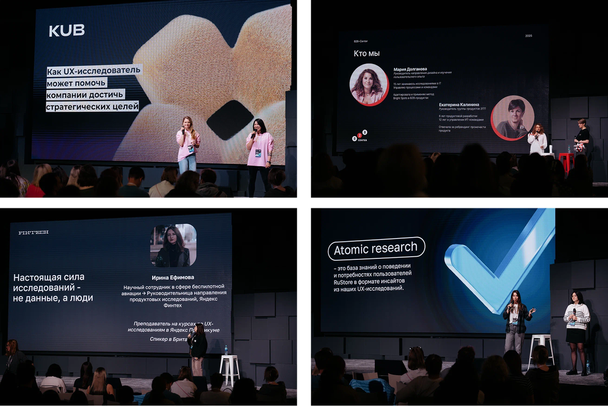 4. «Как создавать исследования, к которым возвращаются: принципы универсальных UX-артефактов». Татьяна Лескова и Татьяна Коваль из RuStore рассказали, как формулировать универсальные инсайты и строить базы знаний, чтобы результаты UX-исследований не терялись, а работали на команду снова и снова.