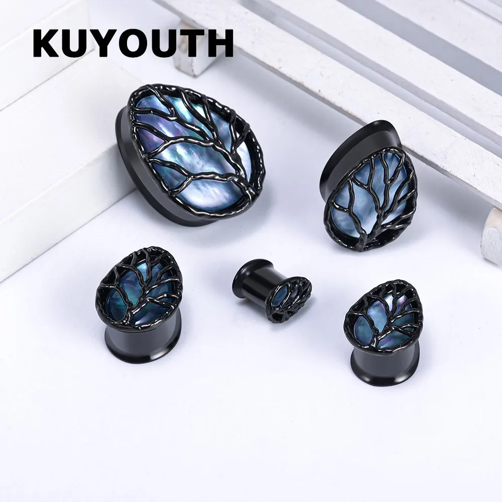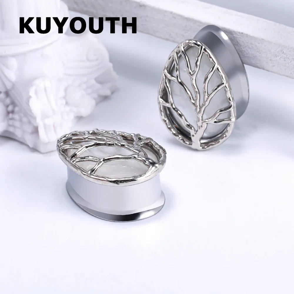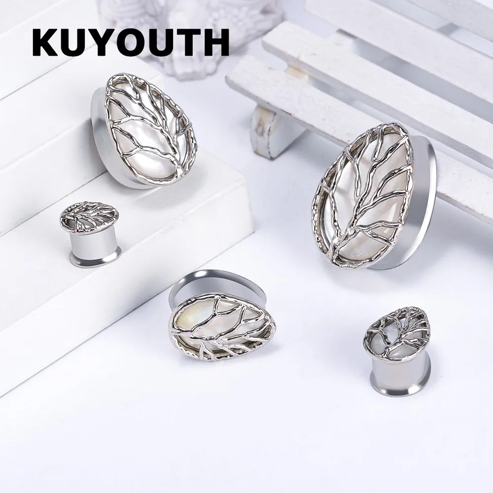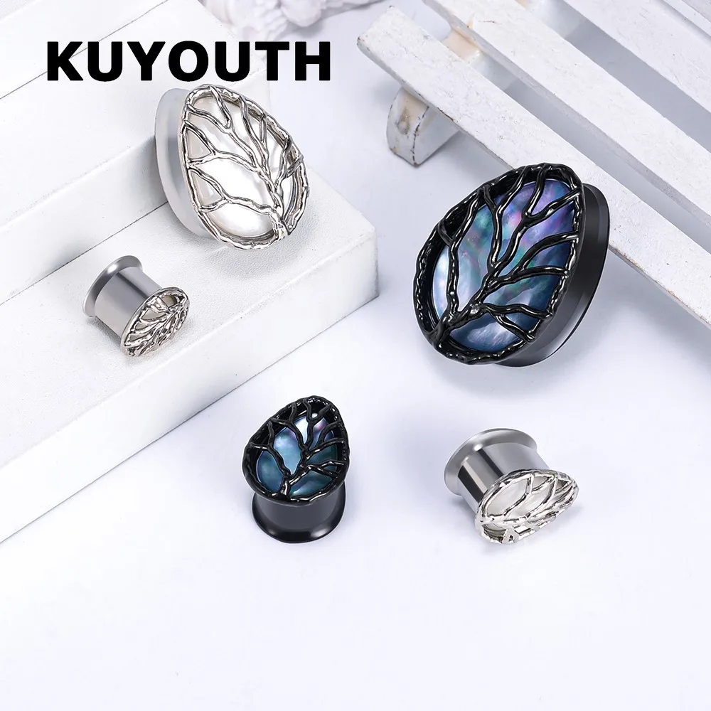BtpRtUOWHere you can buy KUYOUTH New Stainless Steel Shell Life Tree Drop Shape Ear Earring Gauges Piercing Body Jewelry Tunnel Stretchers Expanders 2PCS with free delivery to your post office.