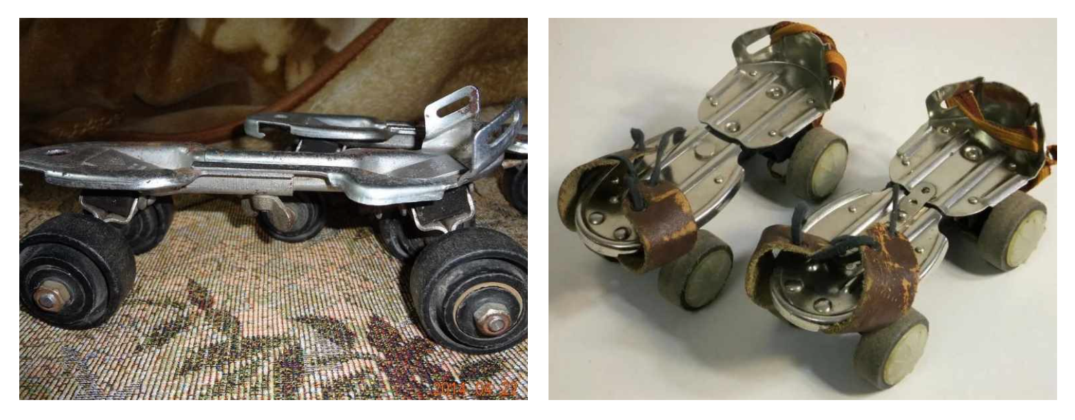 Кроме того, первые советские модели имели раздвижную конструкцию и выгодно отличались отличались от поздних моделей добротным крепежом - там была специальная пластина - каблукодержатель (которая часто терялась), что прибавляло им устойчивости и управляемости. В поздний моделях на смену ей пришли хлипкие ремешки и шнурки.