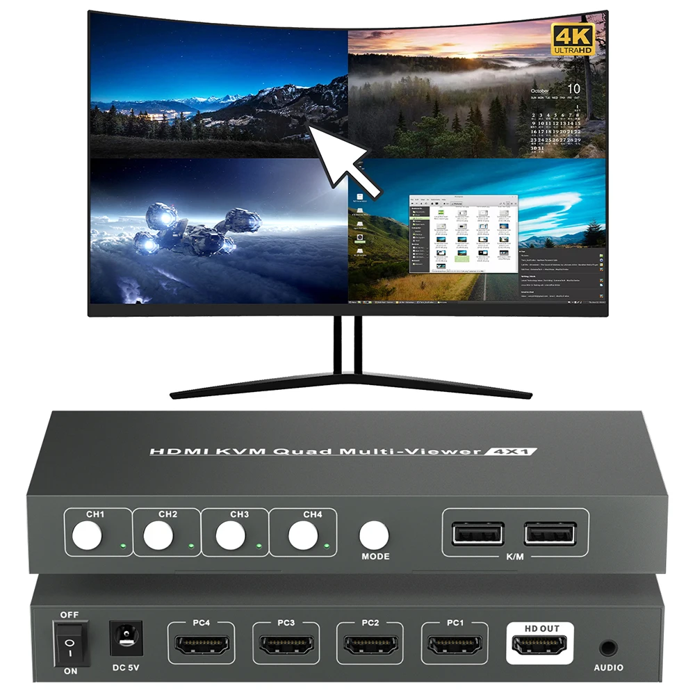 KVM 4x1 Quad Multi -viewer 4 Computer Share 1 Screen Keyboard and Mouse + One Screen Shows 4 Computers Frame for DVR Monitoring - Купить с бесплатной доставкой