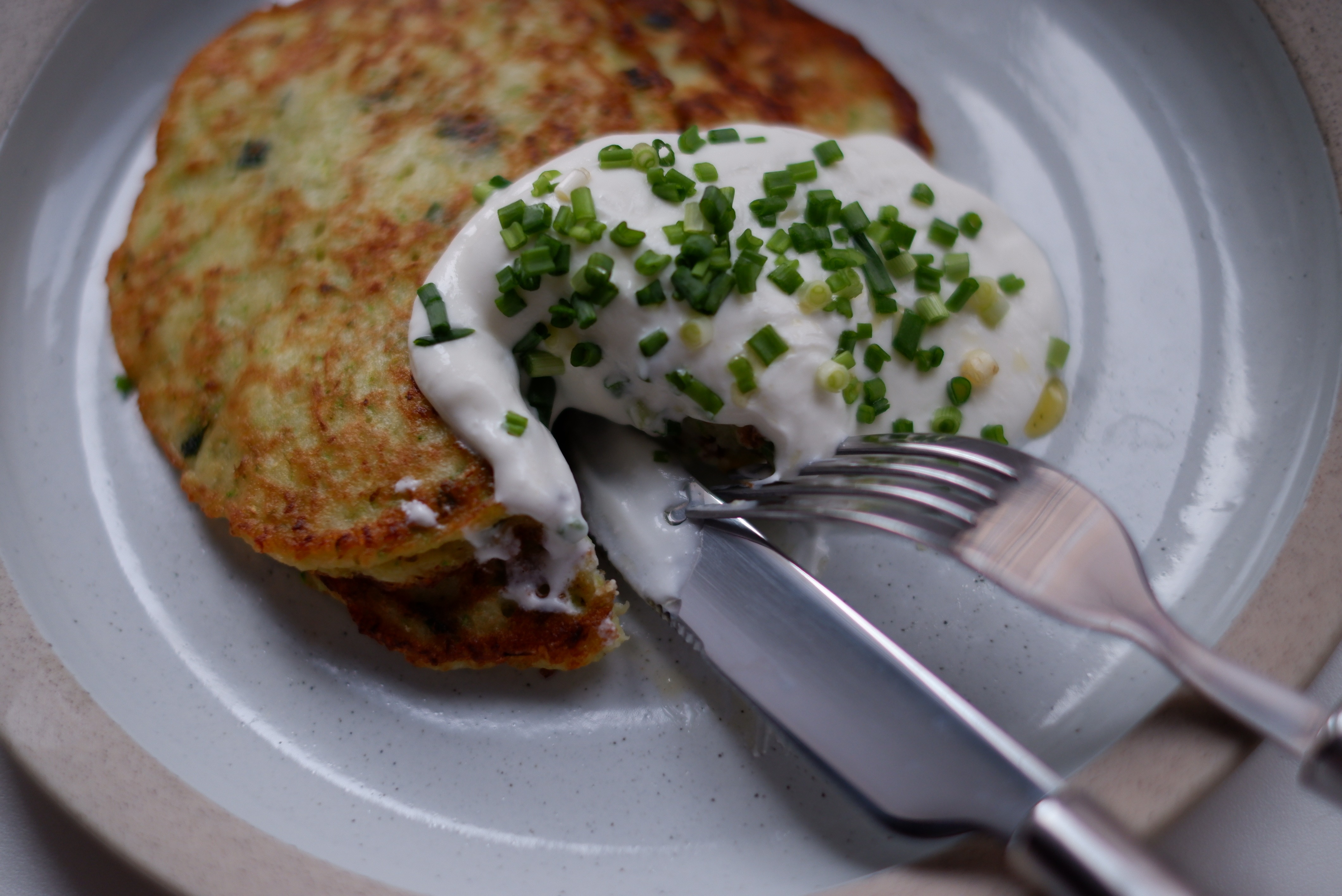 Очень просто и бюджетно, что в нынешних условиях немаловажно. Шлю агрессивные респекты жареному зеленому луку, оладьи благодаря ему заиграли новыми красками.