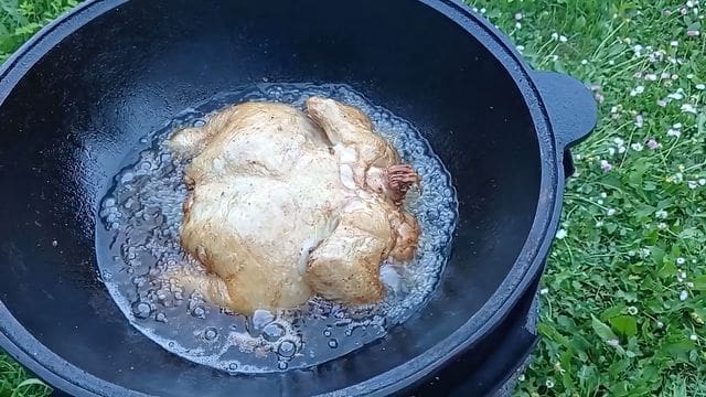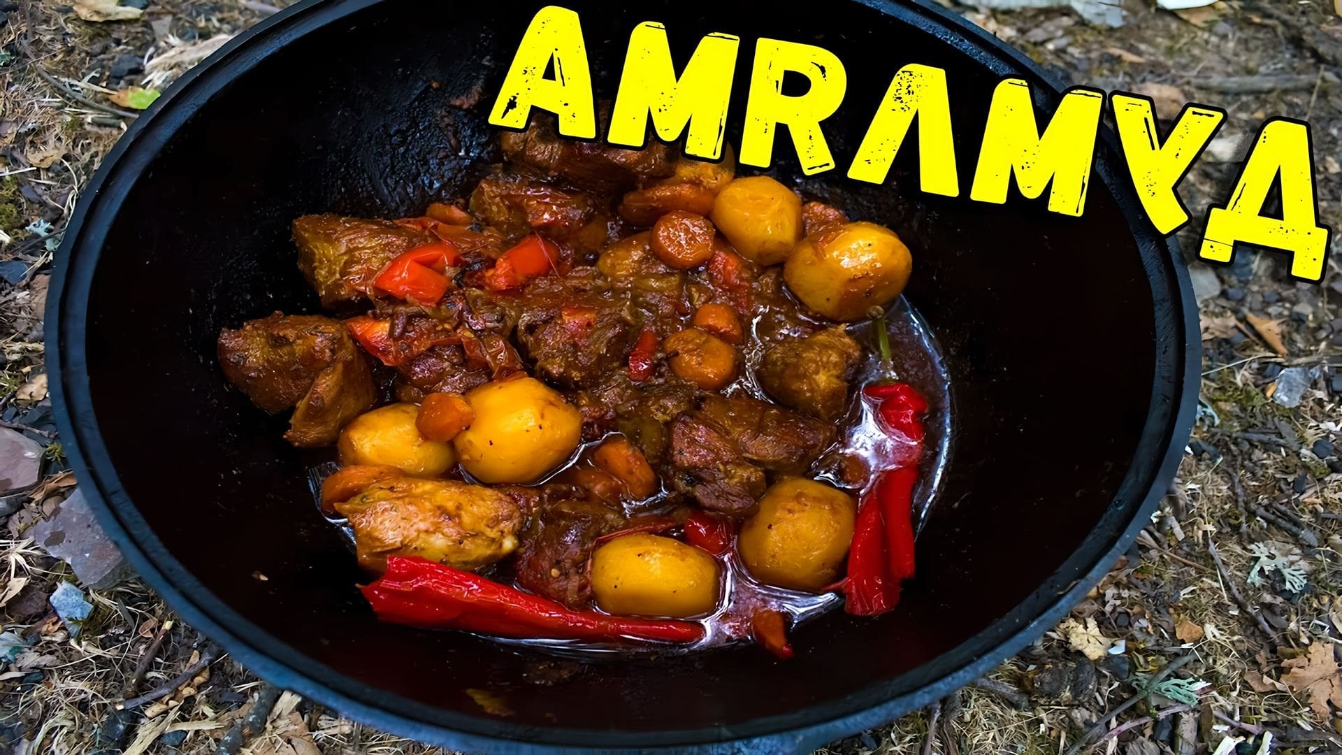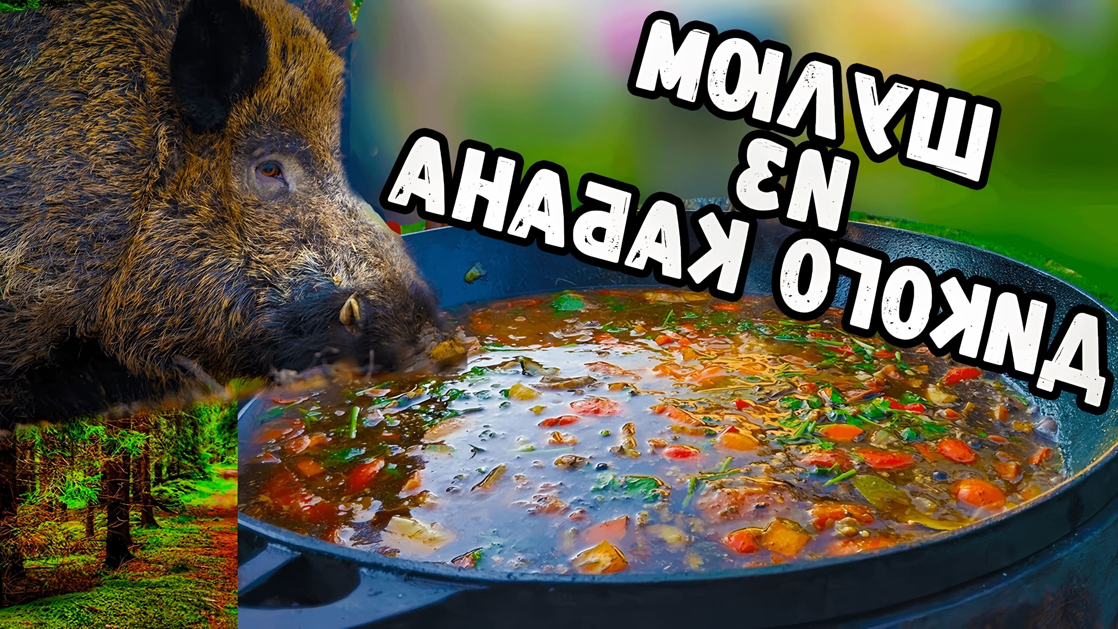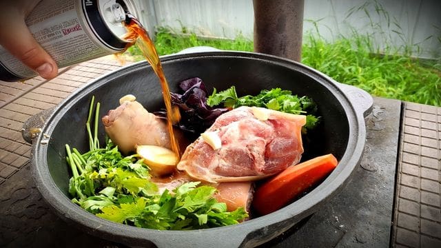 Кабан в казане на костре