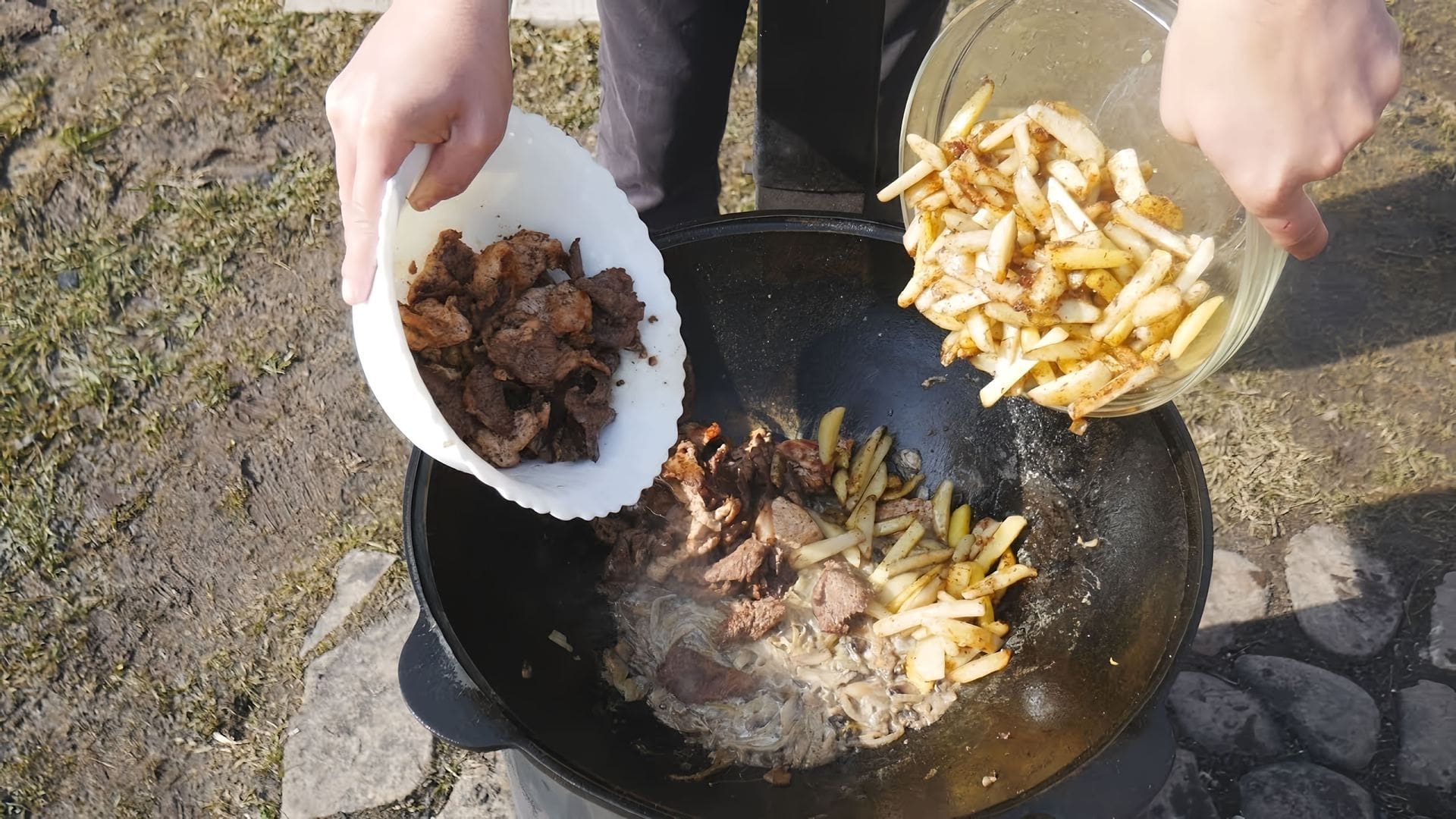 Кабан в казане на костре 75 фото
