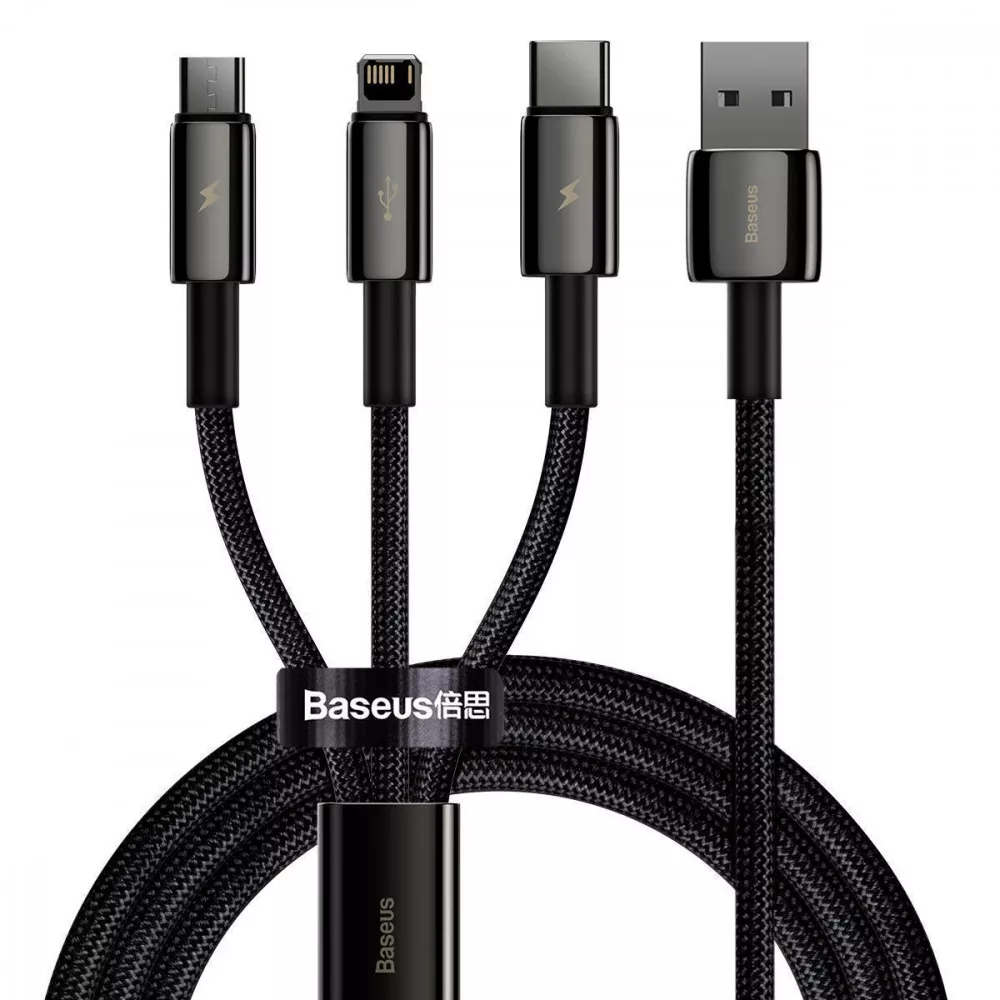 ⚡ Кабель Baseus Tungsten Gold One-for-three Fast Charging Data 3-in-1 (Micro USB+Lightning+Type-C) 3.5A