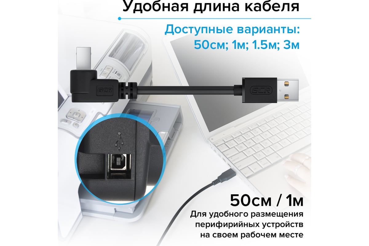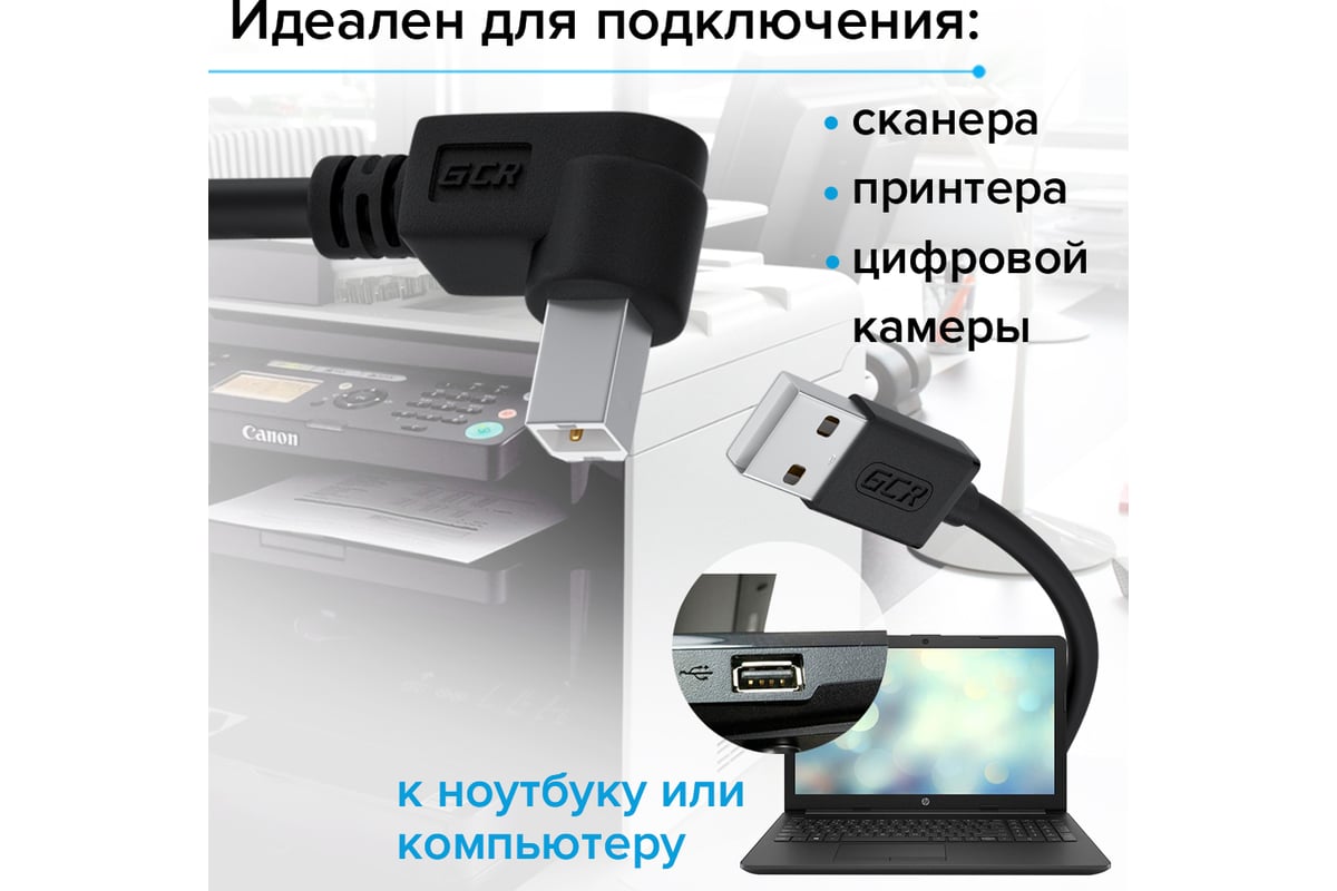 Есть дешевле внутри, от 408 ₽ Угловой кабель USB 2 .0 AM BM GCR 1 .5м для принтера сканера камеры правый угол черный провод АМ ВМ Коннектор 1: USB 2 .0 Type-A Тип коннектора 1: Штекер Коннектор 2: USB 2 .0 Type-B