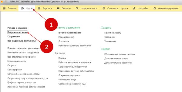 Кадровый отчет в 1с 8.3