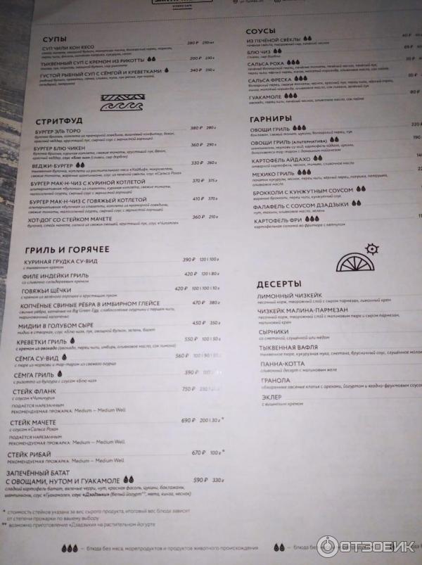 Кафе юг меню