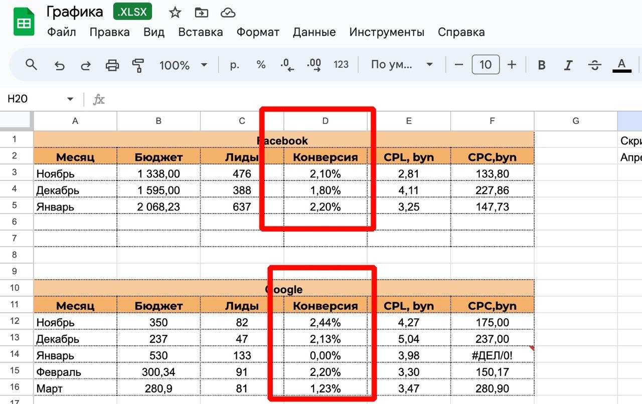 Средняя конверсия из ФБ и гугла выходила примерно 2%
