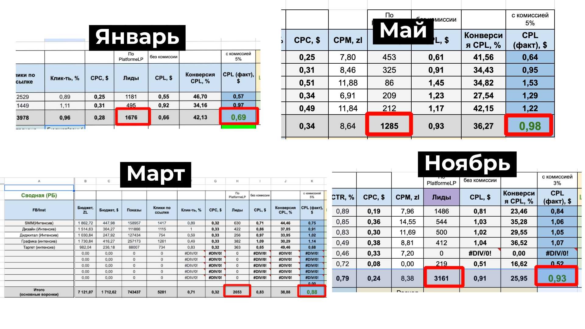 Мы сводим данные по когортам как на скрине выше чтобы видеть все в динамике и считать сколько стоит привлеченный клиент с разных каналов чтобы усиливать тот канал где клиент дешевле