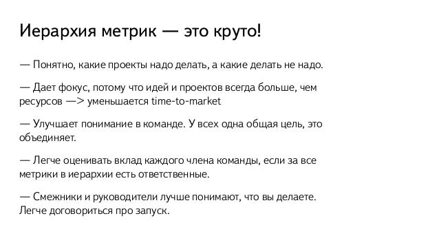 varenich 14 ноября 2017 в 01:13 . Прозрение по метрикам: как я понял, что такое метрики и в чём их главная прелесть . Управление продуктом * . Recovery mode . Метрики — это фуфло, скажите Вы, и будете правы . В чём . . .