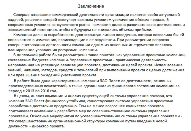 Как написать заключение к дипломной работе - Образец, пример