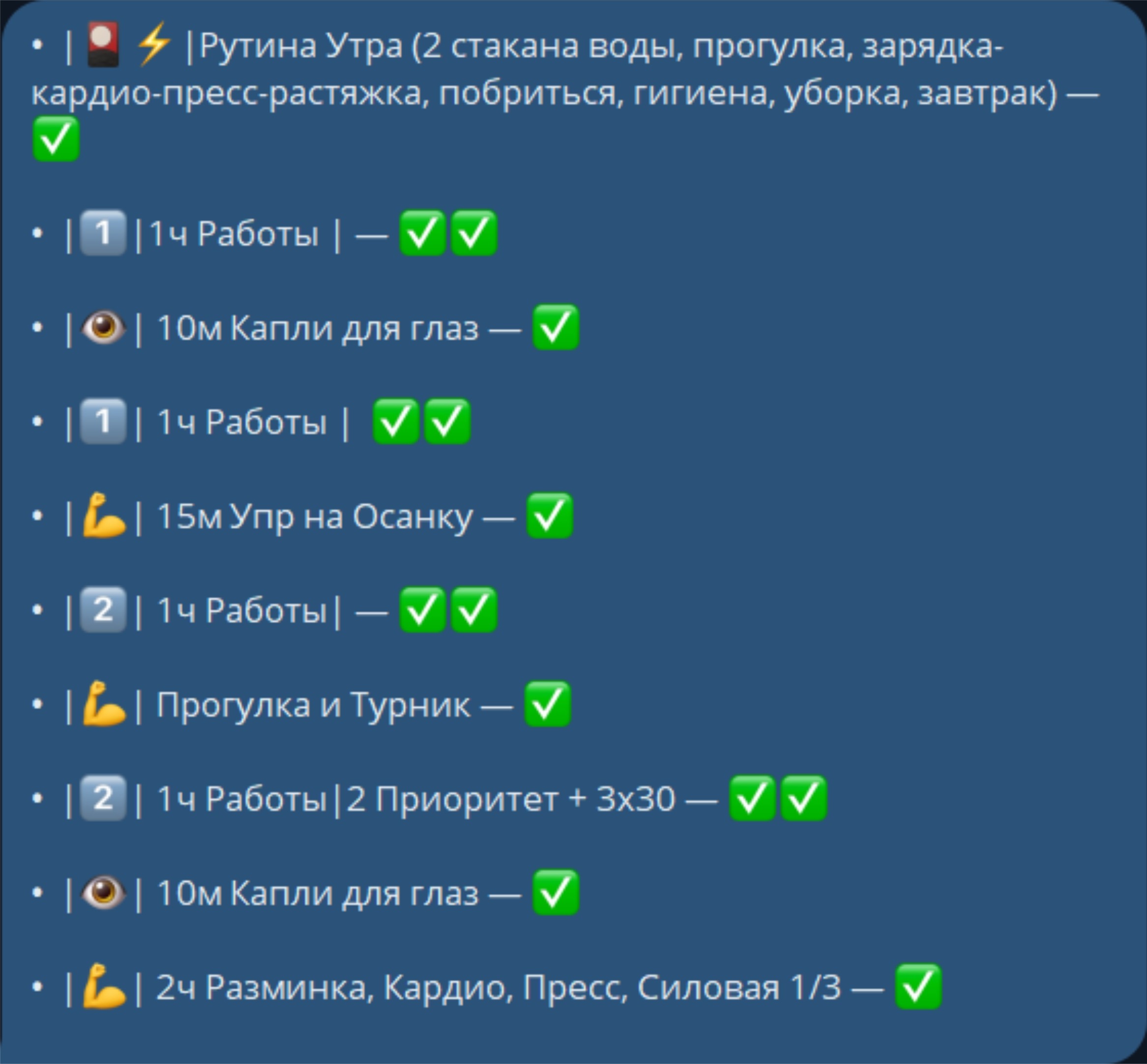 - 3. Ежемесячный отдых — пара дней в месяц, чтобы перезарядить все системы.