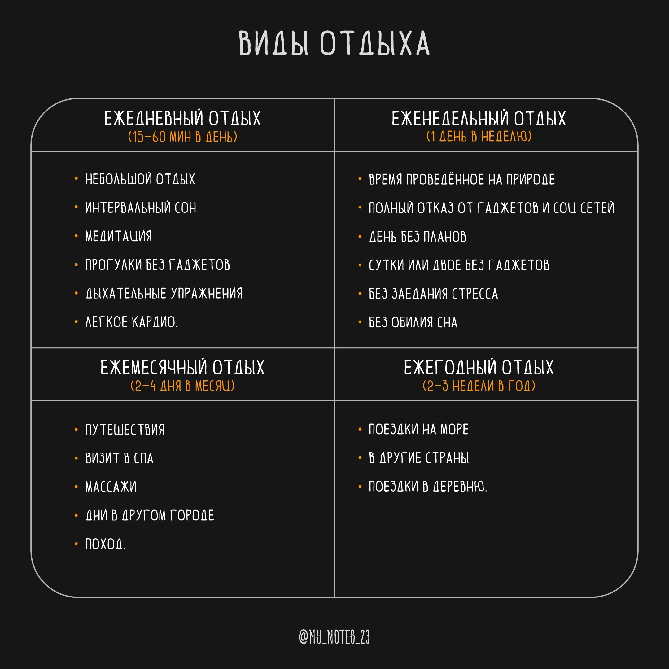 - 1. Ежедневный отдых — это твои 15-60 минут в день, чтобы перевести дух.