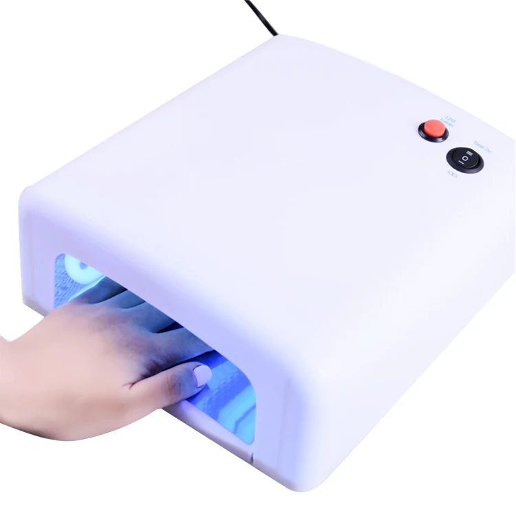 Лампа с мощностью 36 Вт, классической прямоугольной формой, выдвижным дном и таймером с автоматическим включением. Вес 1 кг, подходит для всех современных гелей и шеллака. Стоит порядка 800 — 1 200 рублей.