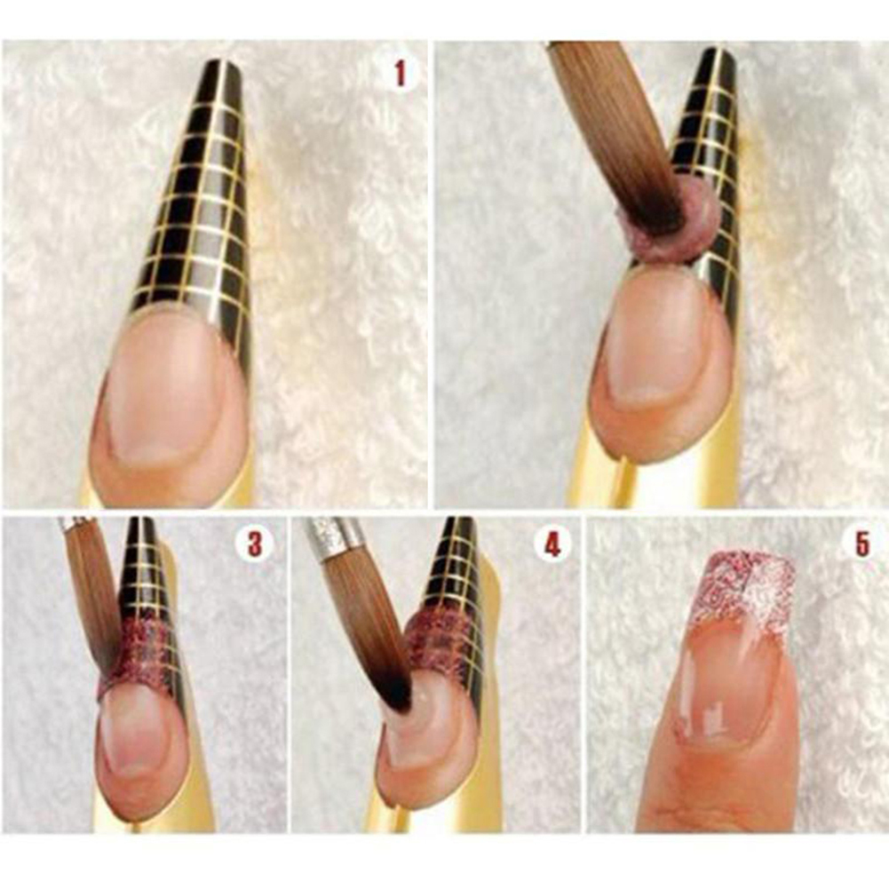 Для того чтобы лучше понять технологию процесса, рассмотрим процедуру наращивания ногтей гелем на формах поэтапно: