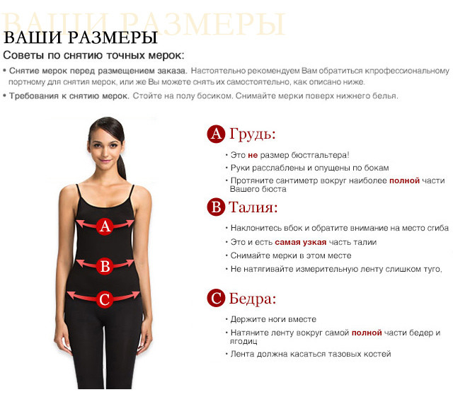 Эта мерка снимается по самым выступающим точкам груди. Сантиметр не следует слишком сильно натягивать или ослаблять. Он должен плотно, но без натяжения прилегать к телу.