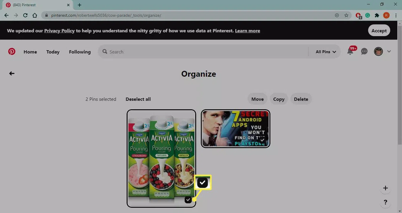 Как удалить сохраненные пины из коллекции в Pinterest . . .