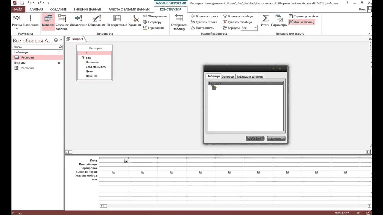 В области навигации щелкните правой кнопкой мыши таблицу, лежащую в основе новой таблицы данных, и выберите пункт Конструктор . -или-В строке состояния Access выберите режим конструктора .