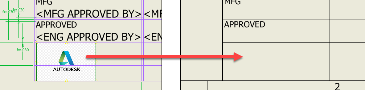 Появляется основная рамка с размерами .В верхнем меню выбираешь Insert>Insert Image . . . щелкаешь на поле для указания координат верхнего левого угла рисунка,далее выбираешь необходимый рисунок .После вставки рисунка правая кнопка>Done . Изменяешь размер рисунка, перетаскиваешь в нужное место, правая кнопка>Save title block . Всё .