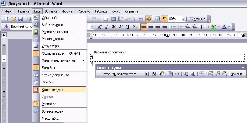 Как вставить колонтитулы в документ