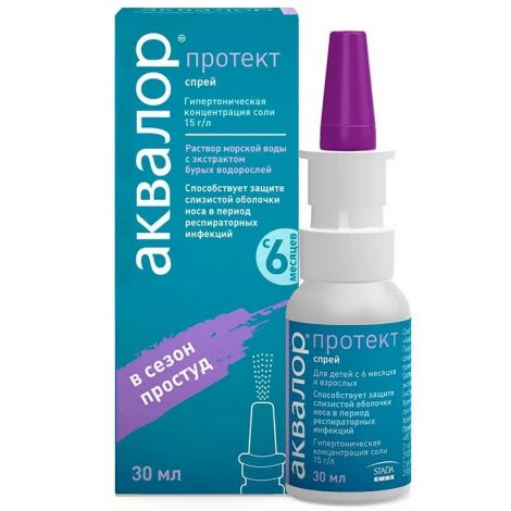 Аквалор . Это лечебно-профилактическое средство, применяемое для орошения и промывания полости носа . В основе спрея лежит натуральная морская вода, в составе которого содержатся NaCl (поваренная соль) и различные микроэлементы: железо, цинк, калий, кальций, медь, селен . . .