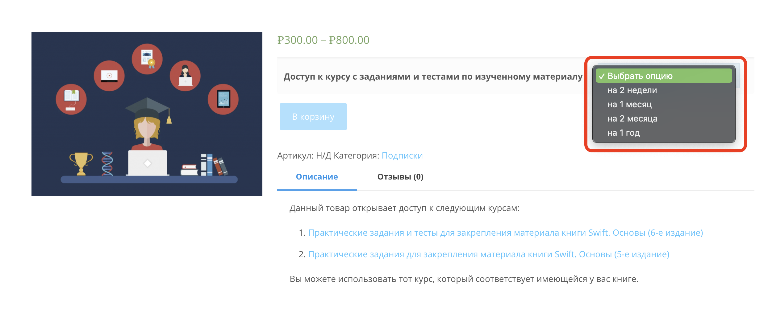 Перед вами откроется товар "Доступ к заданиям и тестам".