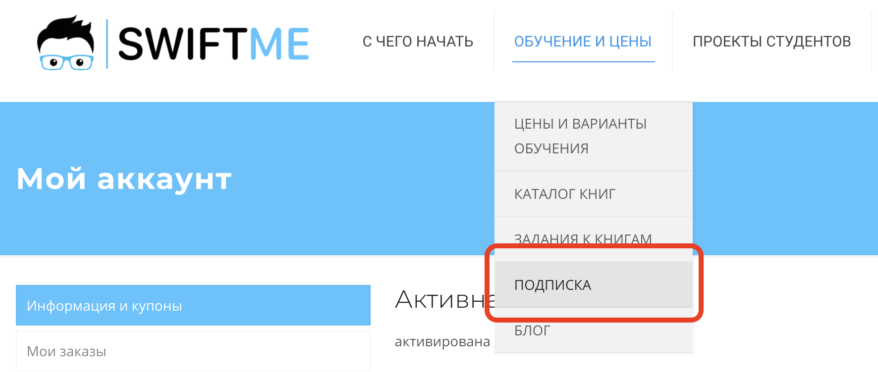 Для этого перейдите в пункт главного меню "Обучение и цены - Подписка".