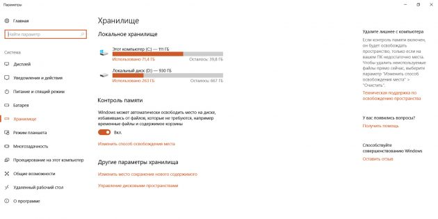 Зачастую по-настоящему полезные возможности Windows 10 скрыты где-то в дебрях операционной системы. С функцией «Контроль памяти», которая автоматизирует очистку жёсткого диска от мусора, дела обстоят иначе. Она у всех на виду, но многие даже и не думают её включать. А зря.